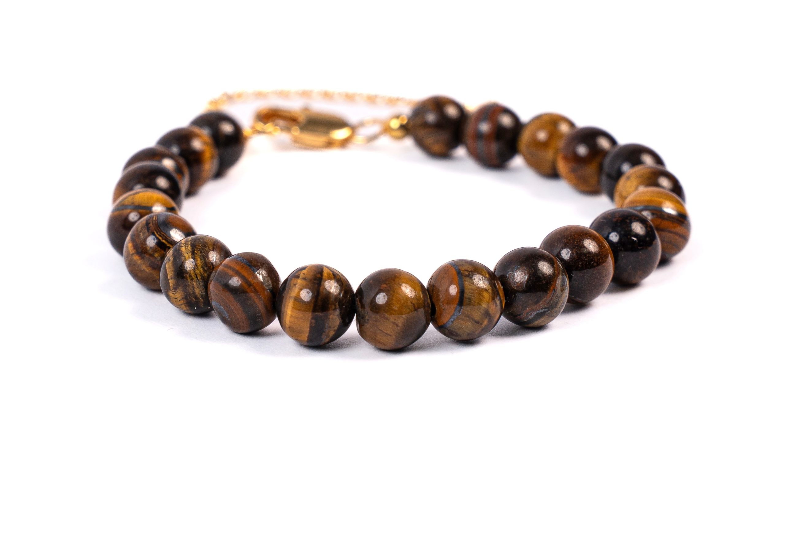 Crafted from 8mm natural Brown Tiger Eye, each bead reveals rich golden-brown reflections that shift subtly with the light — giving every piece its own character.
