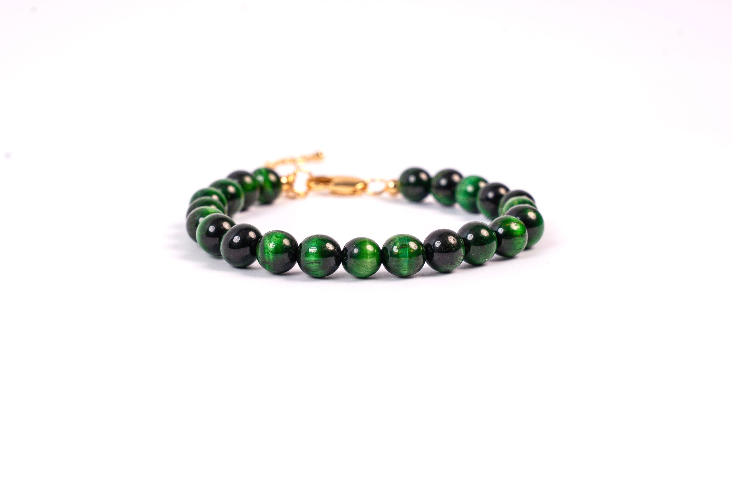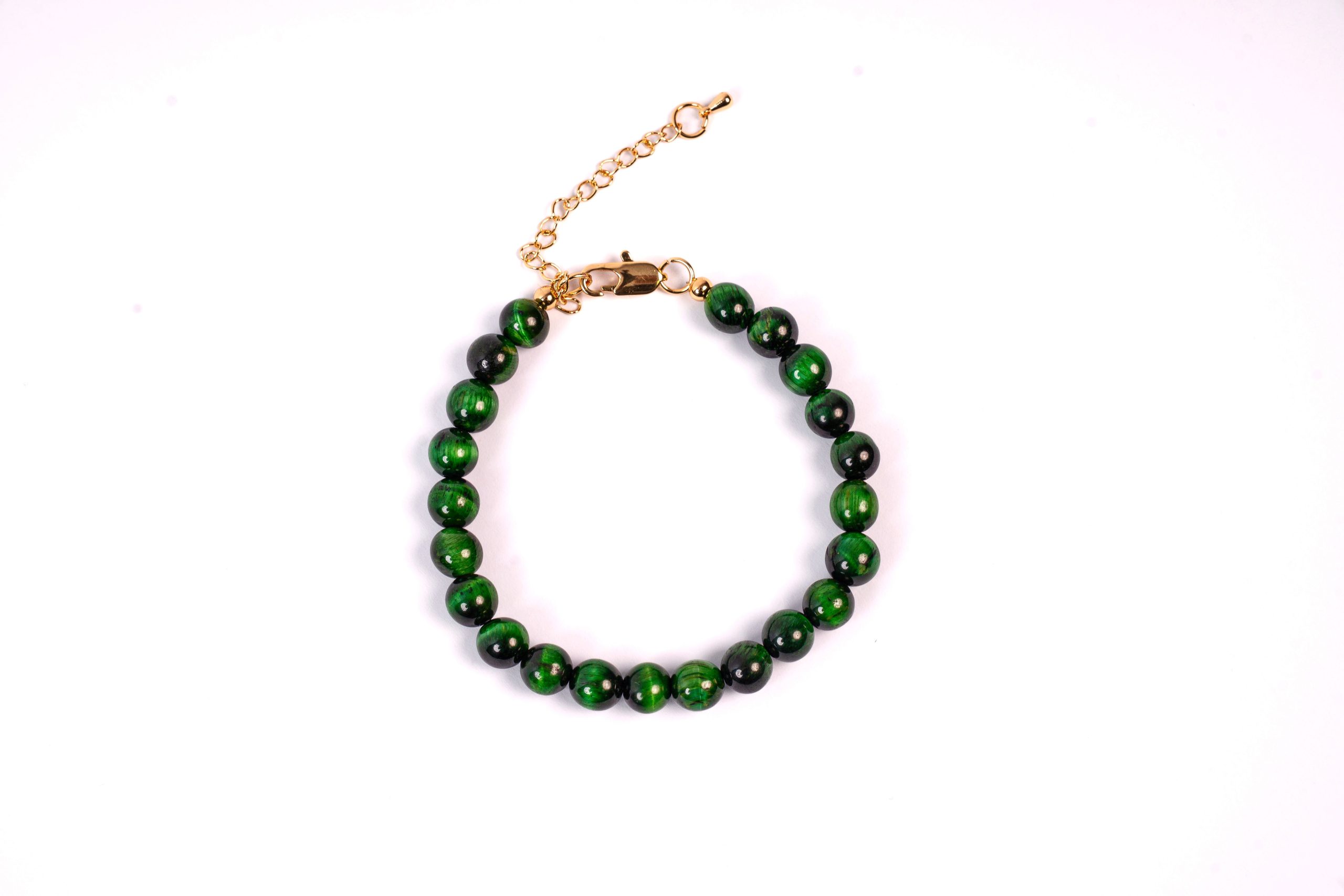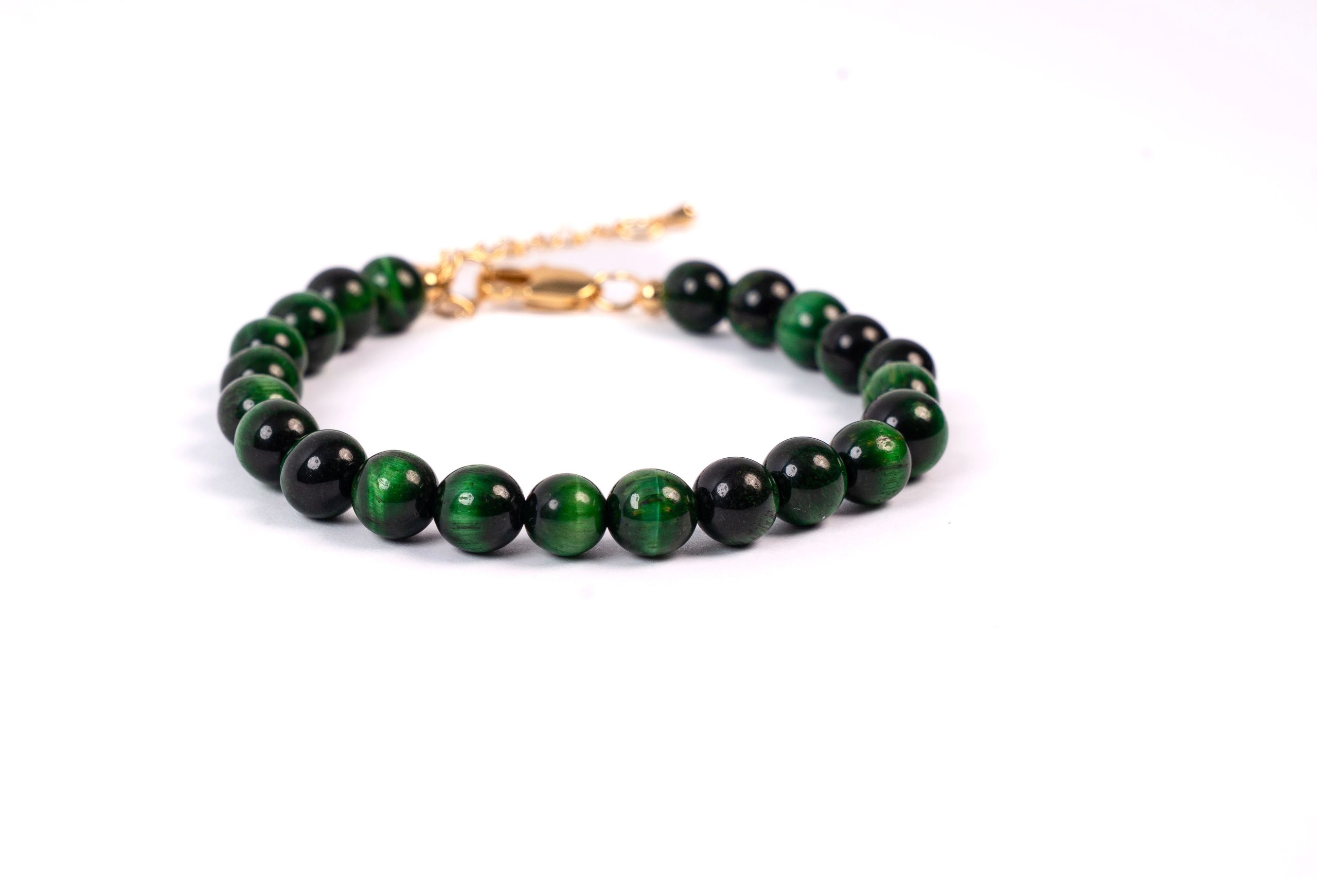 Crafted from 8mm natural Malachite, each bead showcases deep emerald tones with unique organic patterns — making every piece one of a kind.
