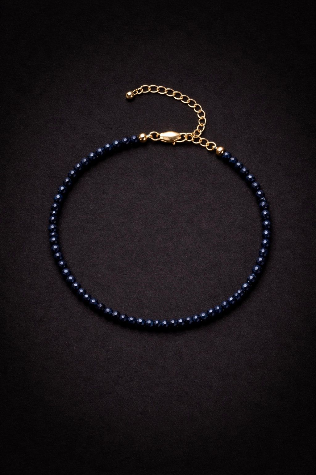 Crafted from finely faceted 3mm natural Blue Spinel, each bead reveals a deep midnight tone with subtle brilliance. Minimal in scale yet bold in presence, this piece reflects modern sophistication with clean, timeless appeal.
