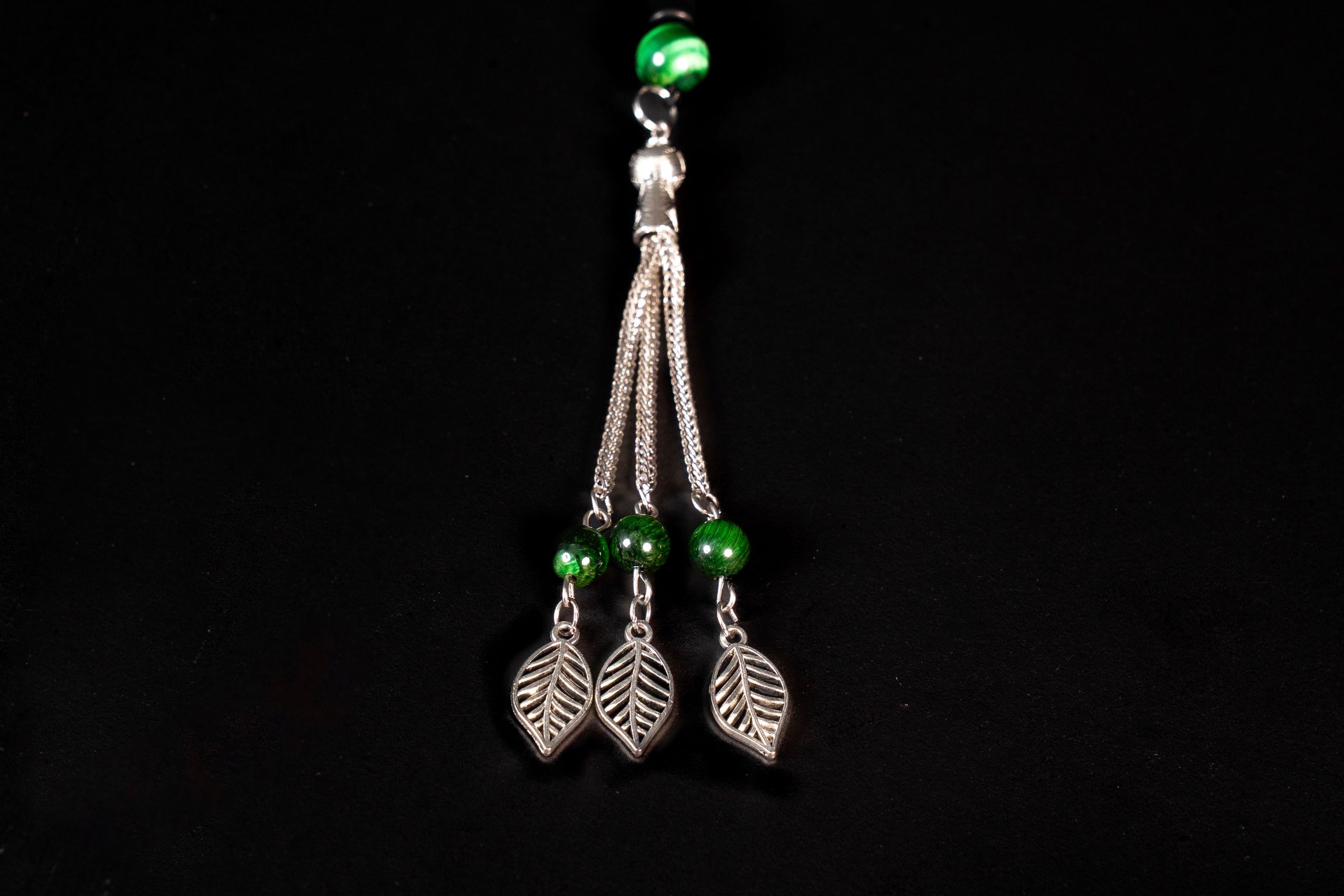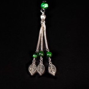 • Tassel: Silver-tone chain tassel with leaf details